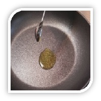 1. お米を計量して、フライパンで、琥珀小さじ1杯で軽く炒めます。(1分位)